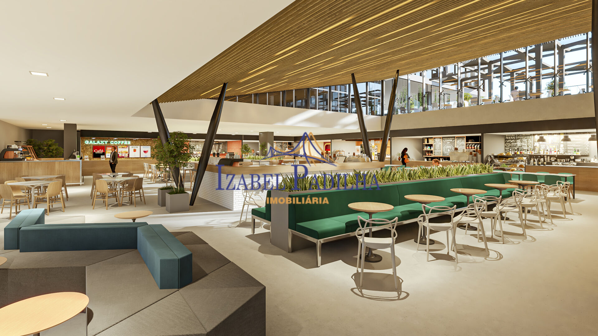 O edifício conta com supermercado Angeloni e farmácia, praça de alimentação, lavanderia.